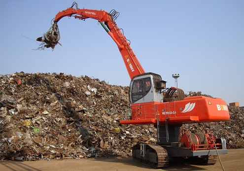 WZYD55-9電動型液壓抓料機(jī)適用于鋼廠料場裝卸廢鋼、裝卸火車皮物料、港口碼頭裝卸物料,廢鋼等,具有以下特點: